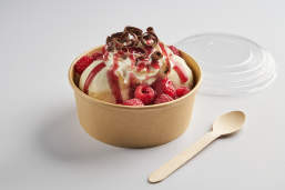View Recipe View All Recipes >Vanilla ice cream topped with bittersweet dark chocolate curls, fresh raspberries, raspberry syrup and whipped cream.